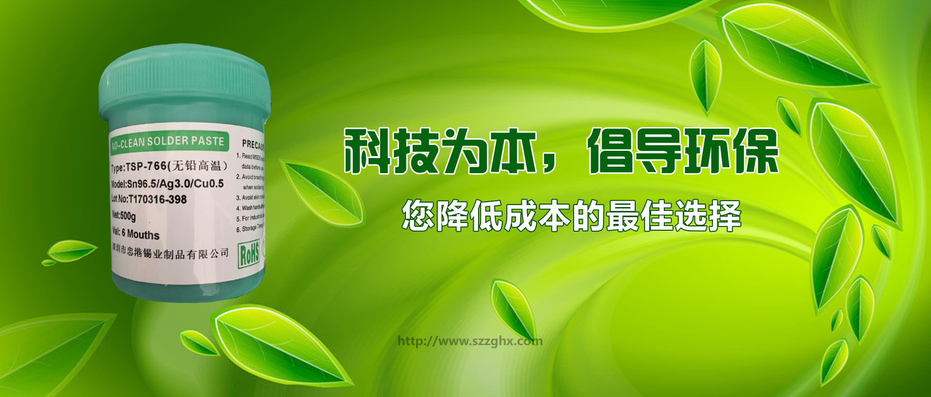 深圳市忠港錫業制品有限公司以專業生產、經營各種規(guī)格和用途的無鉛焊錫,環(huán)保焊錫,焊錫絲,焊錫條,焊錫線,焊錫膏,低溫錫線,焊鋁錫絲,不銹鋼焊錫絲,無鉛錫條,無鉛錫絲,無鉛錫膏, 無鉛低溫焊錫絲,無鉛免洗助焊劑,環(huán)保助焊劑,焊鋁助焊劑,焊鋁錫條,水溶性焊錫絲,不銹鋼助焊劑等為主的電子化工輔料企業。無鉛產品己通過SGS檢測,并獲中國中輕產品[質量、信譽雙保障示范單位]和國際ISO9001:2000質量認證。 自成立以來,以優(yōu)良的產品品質、良好的企業信譽和開拓進取的企業精神,建立了良好的社會關系。經過多年的發(fā)展和努力,目前廣州偵探公司已經在國內已建立穩(wěn)固的銷售網絡和系統,贏得了行業內廣大客戶的贊譽,并倍受用戶信賴,現正成為珠江三角洲地區最具實力的專業焊錫條、焊錫絲、錫膏、助焊劑制造供應商之一。